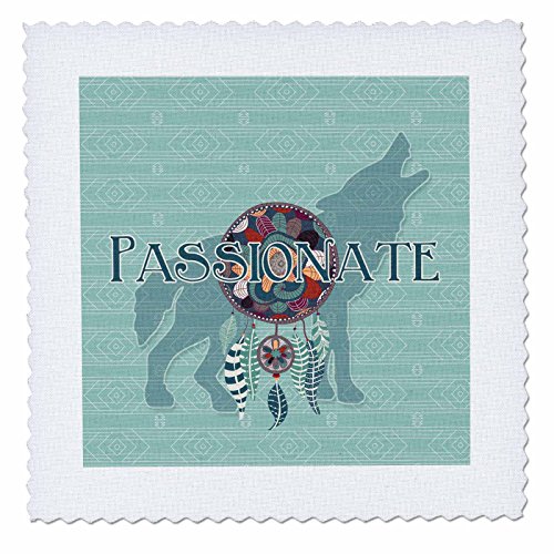 3dRose Wolf Native American Animal Spirit with Dream Catcher Passionate - Quilt Square, 14 by 14-Inch (qs_221983_5)