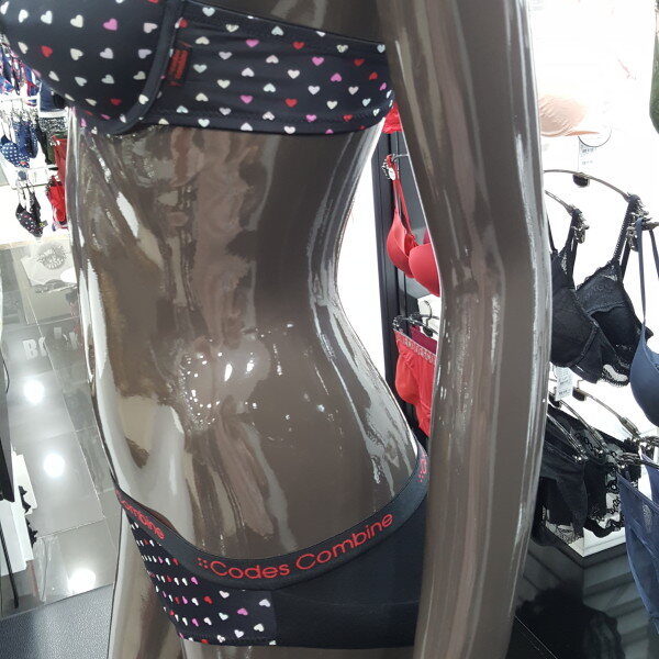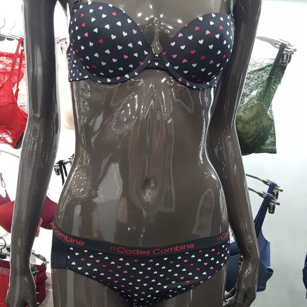 검정 바탕에 알록달록 사랑스런 하트가 포인트된 코데즈 하트프린트 브라팬티세트 입니다.