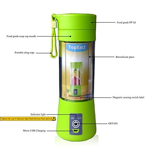 [NEUE Version]TopEsct Smoothie Maker to go Mobiler Standmixer / Elektrischer Mini Saftmixer / mit USB wiederaufladbar, BPA frei, 380ml, Sechs 3D-Klingen fur hervorragendes Mixen