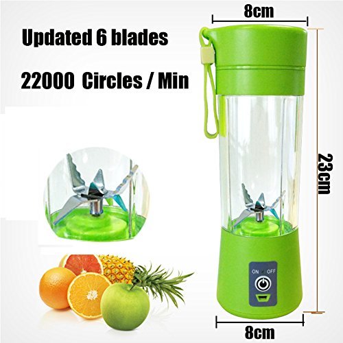 [VERBESSERTE Version]Mobiler Smoothie Mixer mit Sechs 3D Messer fur hervorragendes Mixen von gesunden Saften und Smoothies aus Obst und Gemuse. Ideal fur Reise und unterwegs