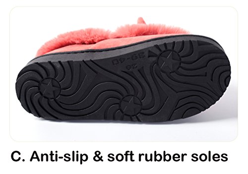 -. Feature : Slip-on (Closed back) closure, easy on/off and keep you all days warm and comfortable / Women's slippers featuring cute 3D cartoon animal design / Men's slippers featuring classic solid colors / Short plush upper; and thick long plush lining. Soft, smooth, and warm / Anti-slip rubber soles suit for both indoor and outdoor wearing: home, house, bedroom, indoor, outdoor, kitchen, office, garden, park, etc.