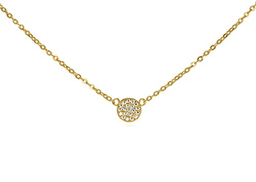 -. Binding : Jewelry -. Brand : GlitterLounge -. Department : womens -. Feature : Small CZ Pave Encrusted Disk Necklace .925 Sterling Silver / Dainty and perfect for everyday wear. Luminous high shine gold tone finish. / Pendant Measures: .25" with an FULLY Adjustable Extension Chain (16" - 18" ) / FAST SHIPPING - Overnight or 2nd Day Delivery Available / Perfect GIFT for a Birthday, Anniversary, Valentine's Day, Mother's Day or Bridesmaid Present -. Model : DVF-N150-202 -. ProductGroup : Jewelry -. ProductTypeName : FASHIONNECKLACEBRACELETANKLET -. Title : Tiny CZ Pave Disk Necklace .925 Sterling Silver Gold Tone Finish Adjustable Chain 16" - 18" GIFT Box