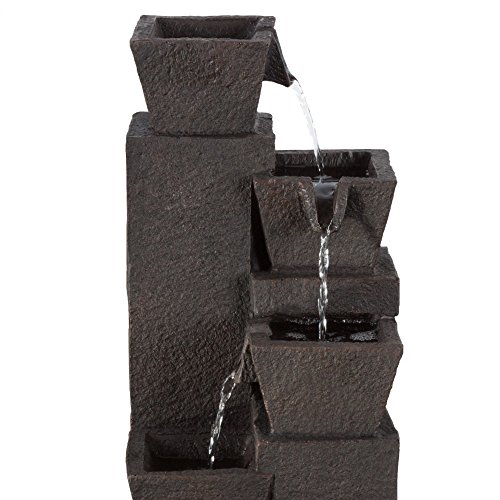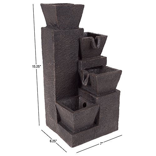 Tabletop Water Fountain With 4 Tier Modern Design and LED Lights - Square Table Fountain by Pure Garden (Brown) (Office, Patio and Home DÃcor)