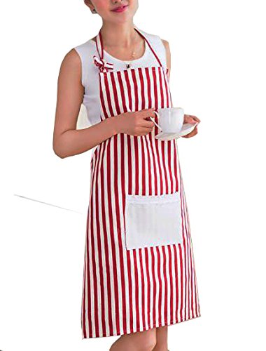 HappyDaily Fashion Kitchen Apron - Durable,, Pretty, Ideal for Cooking (Red Stripe)