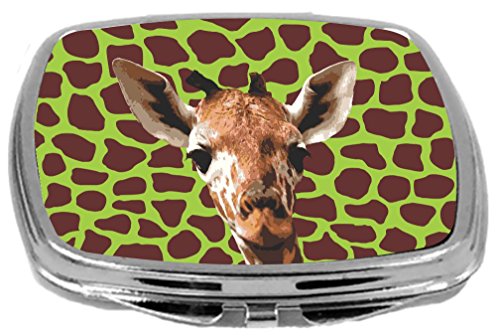 Rikki Knight Compact Mirror, Giraffe Close-up On Lime Green