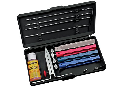 • Kit includes knife clamp, four sharpening hones (coarse, medium, fine, and serrated), guide rods, oil, storage/carrying case, and instructions