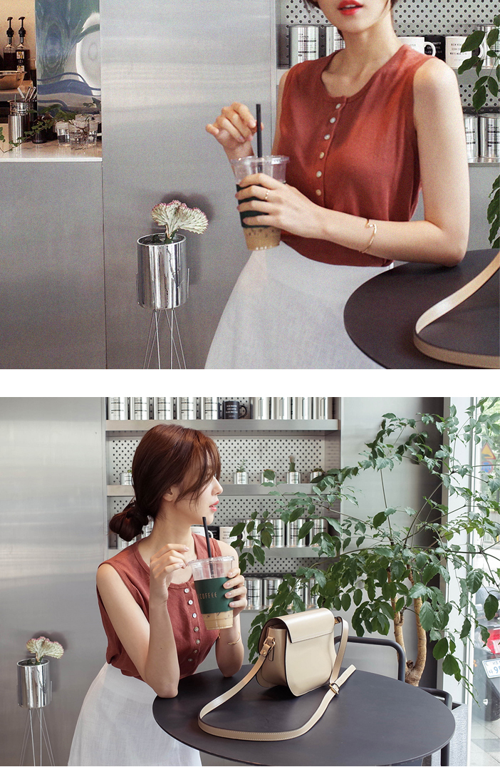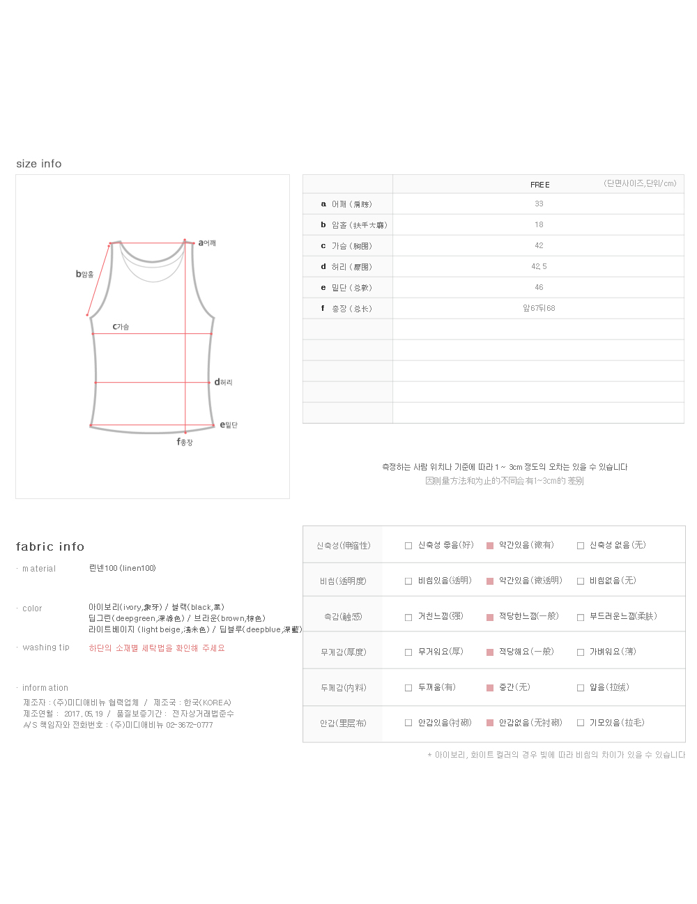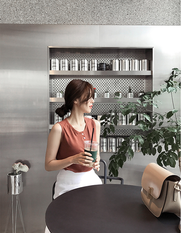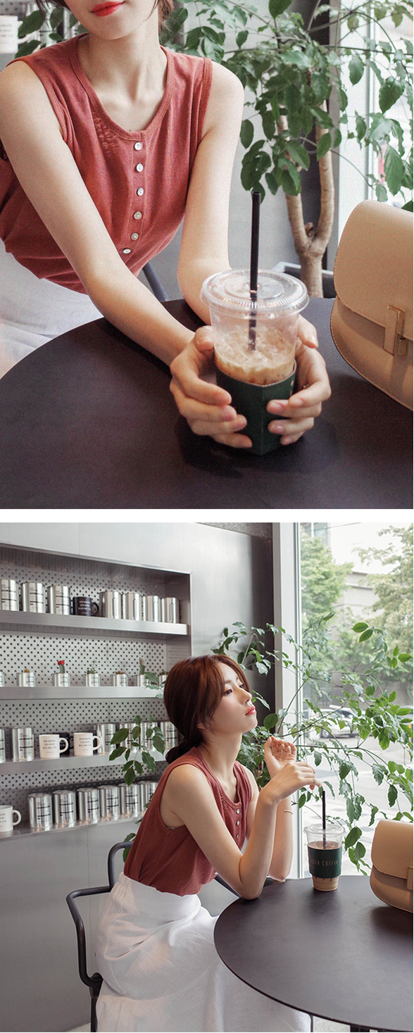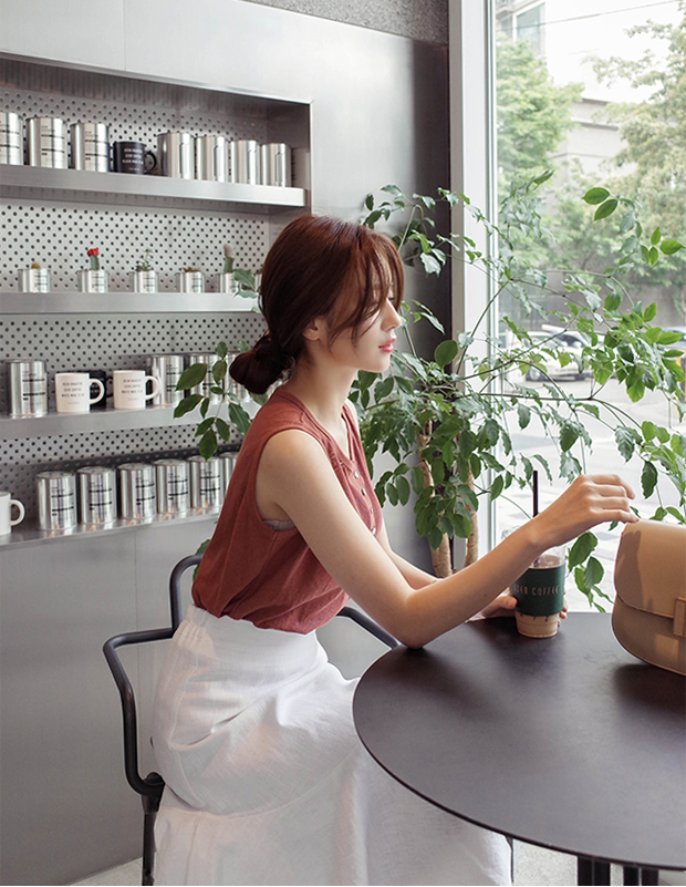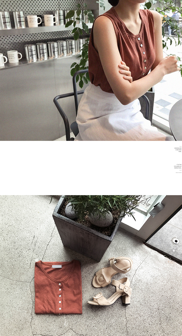리넨 100 소재로 제작된 슬리브리스 탑이예요:)