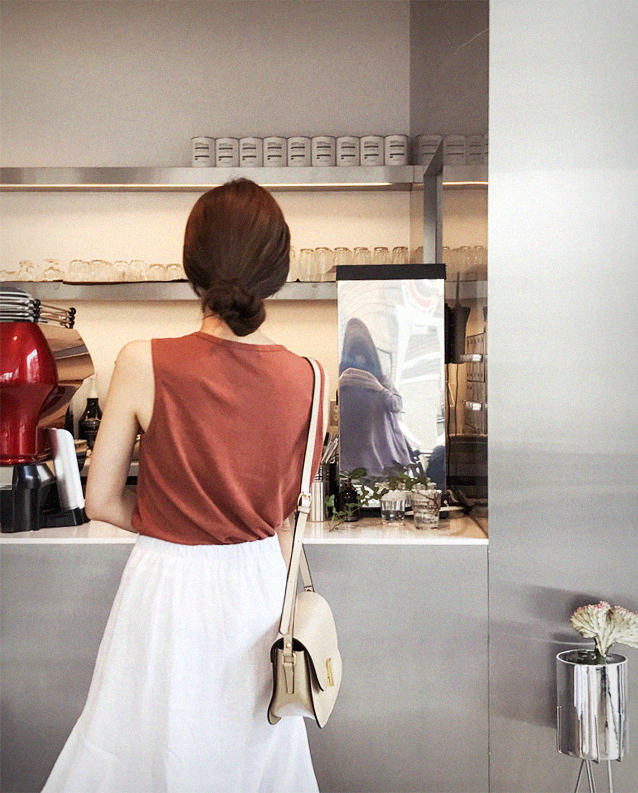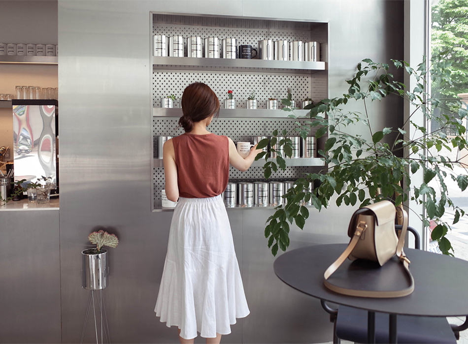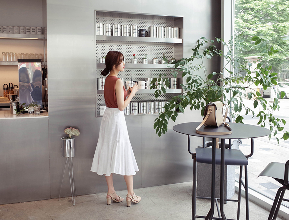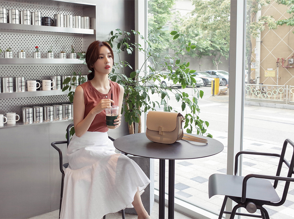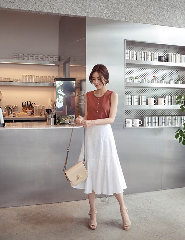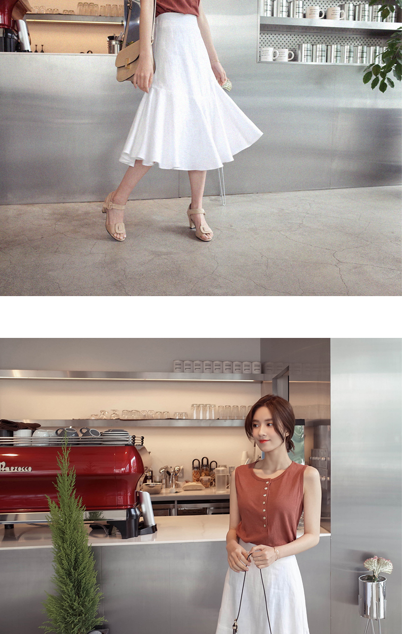 리넨 100 소재로 제작된 슬리브리스 탑이예요:)