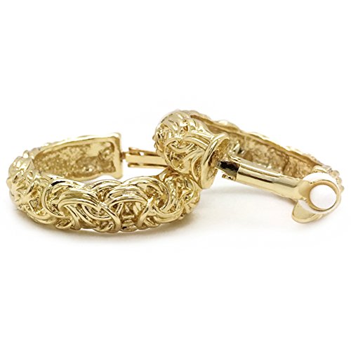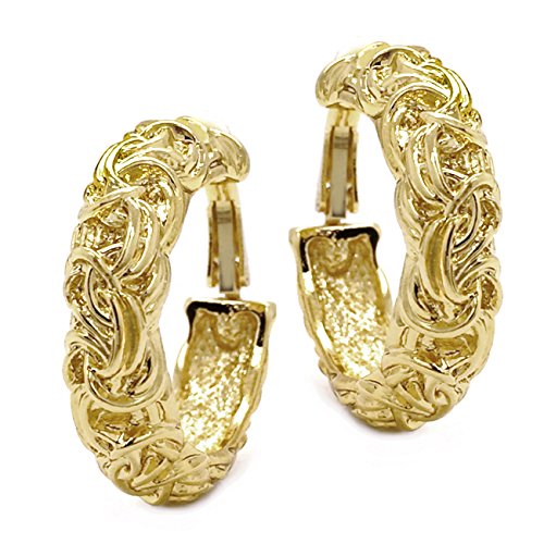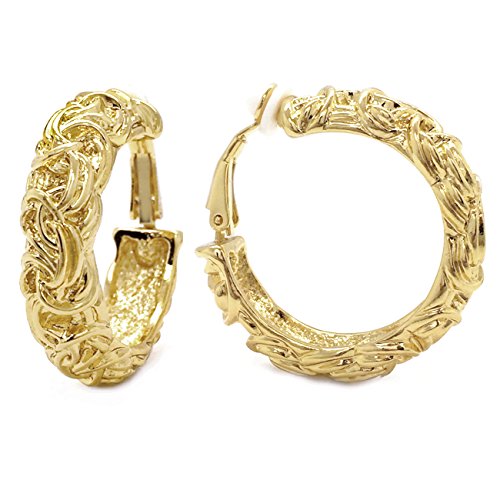 Classic Byzantine design that will never go out of style. Made of base metal alloy, these hoop earrings are featuring byzantium knot with ornate detailings and have substantial weight. Clip on backings secured these hoop earrings with ease and comfort. Casual and timeless at the same time. These fashion clip on earrings will make the perfect choice for your special someone for Valentine's gift, Christmas gift, Mothers day gift, Birthday gift, Anniversary Gift, or Bridal party gifts.Feature