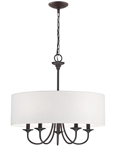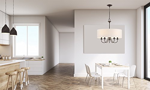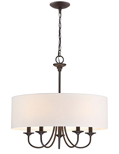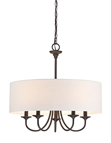 Revel Quinn 21" Traditional 5-Light Chandeiler + White Linen Drum Shade, Oil-Rubbed Bronze Finish