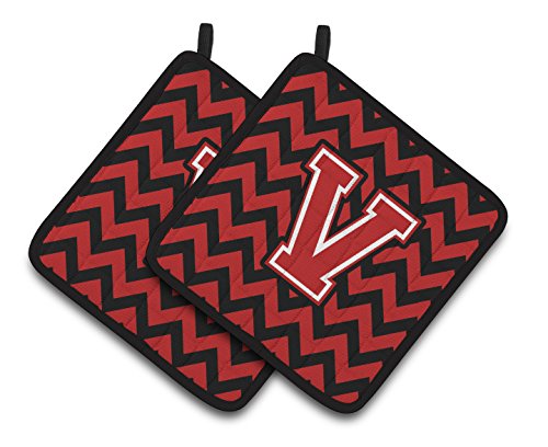 Caroline's Treasures Letter V Chevron black & Red Pair of Pot Holders CJ1047-VPTHD, 7.5HX7.5W, Multicolor