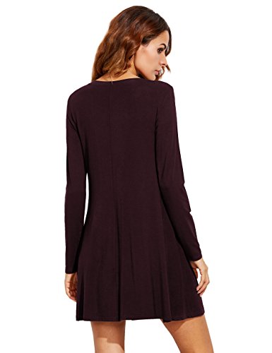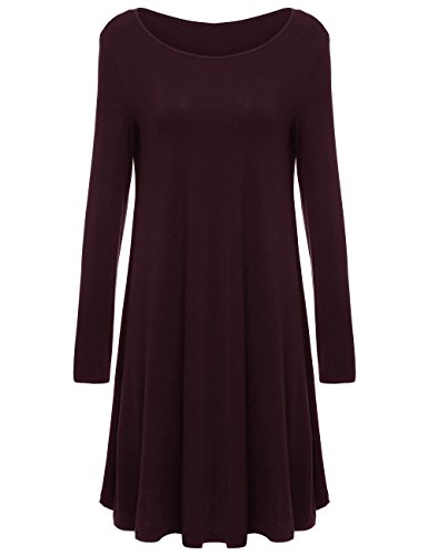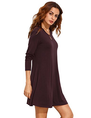 Round neck, long sleeve, loose hem, tunic top T-Shirt dress style.