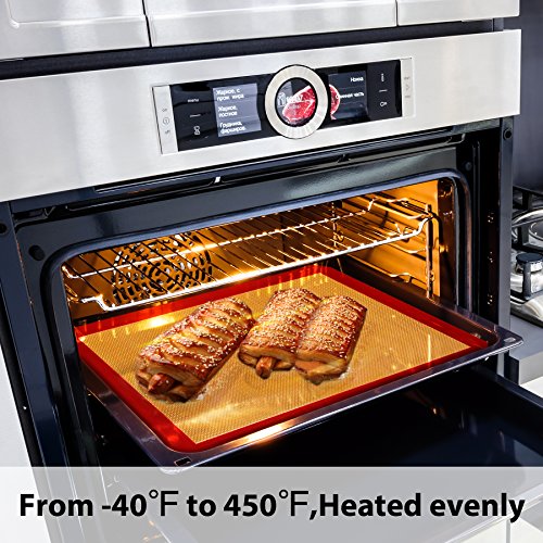 Oven-safe: This baking mat is ultrathin 0.027in(0.7mm) and fits From -40℉ to 450℉,Heated evenly,do not worry the food or meat half-baked.