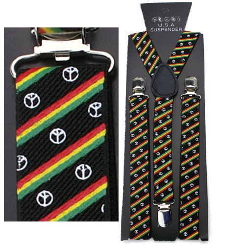 (2 Brothers Unlimited)/Accessories/Suspenders Cummerbunds/DIRECT FROM USA/Rasta Fingerless Gloves (Peace Sign), Suspenders (Peace Sign) and Bowtie