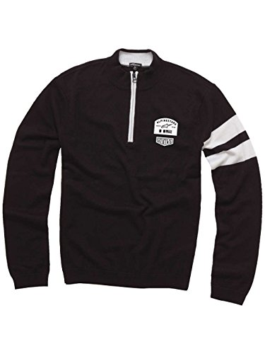 Studio : Alpinestars Publisher : Alpinestars Binding : Apparel Product Description Pullover sweater features sporty bold stripes at arm and brand patches at left chest. Mock collar with rib trim. Rubbed cuffs at long sleeves. Contrast zip-up placket at front. Straight hemline with rib trim. 55% cotton, 45% acrylic. Hand wash cold, lay flat to dry. Imported. 0
