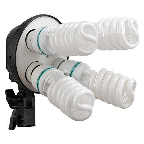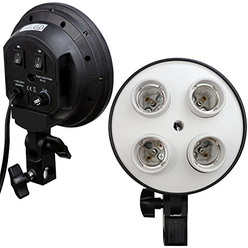 Operates 4 bulbs separately to control light stream using 2 On/Off switch buttons located on the back. The head acts as a speedlight for the dedicated softbox. Softens light intensity through the internal white cover and soft box -Works with 110 - 120V -Operate: 4 Bulbs -Color: Black -Material: Porcelain