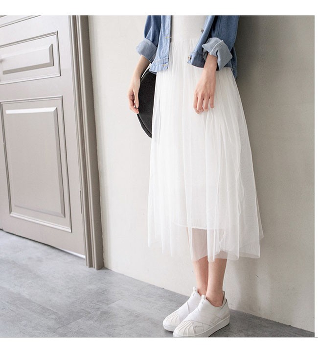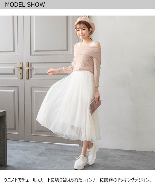 ウエストでチュールスカートに切り替えられた、インナーに最適のドッキングデザイン。