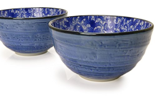 [Product Information]- SET OF TWO - Soup or Noodle bowls that work well for many other dishes. Elegant Indigo Blue and White floral design
