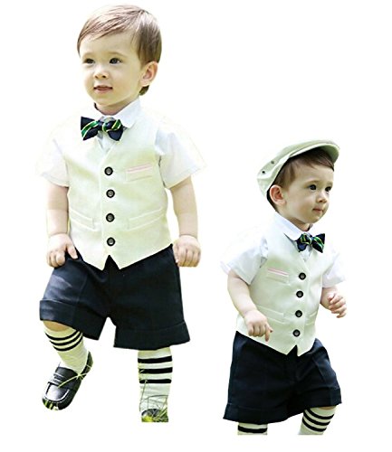 -. Feature : 男の子 フォーマルスーツ 5点セット / ベスト、半袖シャツ、ハーフパンツ、蝶ネクタイ、靴下、ポケットチーフ(縫込み)のセットです。 / 卒業式、入学式、誕生日、パーティー、七五三、発表会、記念撮影 等お子様の晴れの舞台に是非、お使い下さいませ。 / 色んなフォーマルシーンで活躍する、セットアップスーツ。 / パンツは総ゴムになっているので、子供達でも脱ぎ着しやすいデザインです。 ブランド:Cuteshower 商標出願番号:2016-074548