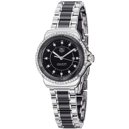 -. Binding : Watch -. Brand : TAG Heuer -. Color : black -. Department : WATCHE -. EAN : 7612533096967 -. Feature : Two-tone watch in stainless steel with diamond-set bezel, diamond hour markers, and black center links on band / Quartz movement with analog display / Protective anti-reflective sapphire crystal dial window / Features screw-down crown, luminous hands, and deployment clasp with push-button closure / Water resistant to 660 feet (200 M): suitable for recreational scuba diving -. Label : Tag Heuer -. Manufacturer : Tag Heuer -. Model : WAH1312.BA0867 -. MPN : WAH1312.BA0867 -. PackageQuantity : 1 -. PartNumber : WAH1312.BA0867 -. ProductGroup : Watch -. ProductTypeName : WATCH -. Publisher : Tag Heuer -. ReleaseDate : 2014-09-30 -. Studio : Tag Heuer -. Title : TAG Heuer Women's WAH1312.BA0867 "Formula 1" Stainless Steel Two-Tone Watch with Diamonds