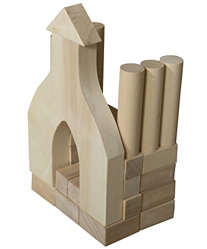 The Wood Designs WD60300 hardwood nursery blocks have eased edges and corners for safety and come in 14 shapes for a variety of stacking configurations. The set of 93 blocks has a natural hardwood color and weighs 32 lb. This nursery block set is Underwriters Laboratories (UL) Greenguard Gold certified for environmental safety and is suitable for use in an educational environment.