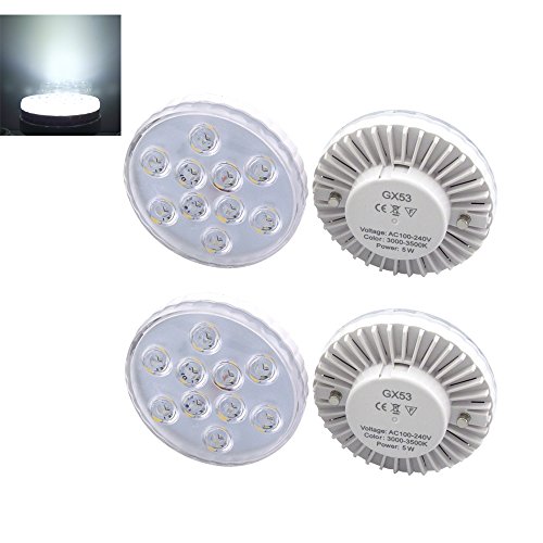 Bonlux Gx53 LED Light Bulb 5 Watts Daylight 6000k CFL Gx53 Replacement Bulb for Cabinet, Showcase, Exhibition, Shop Showroom Lighting(Pack of 4)