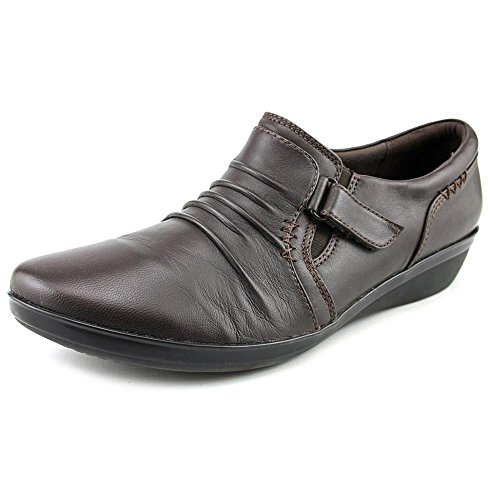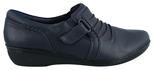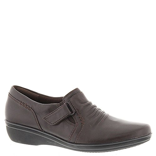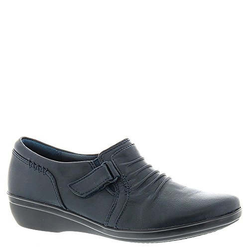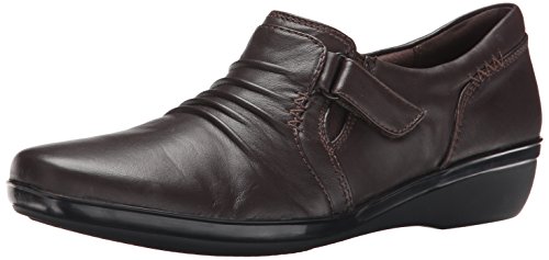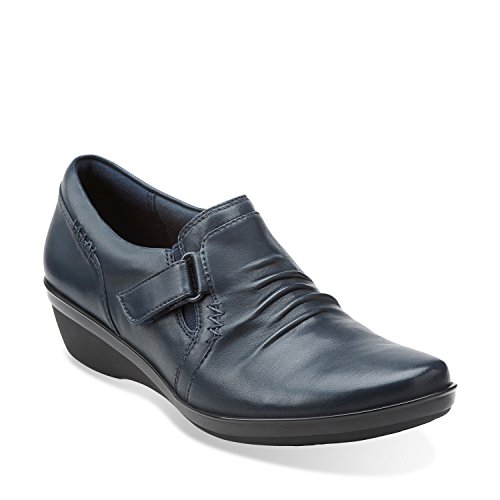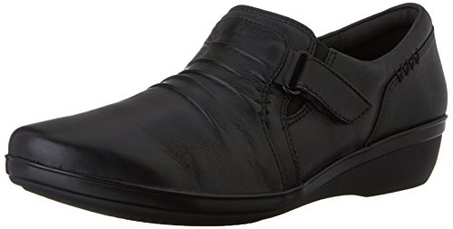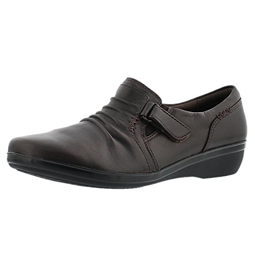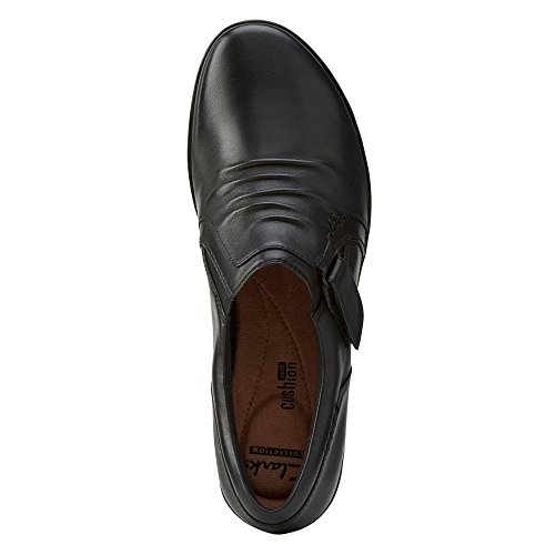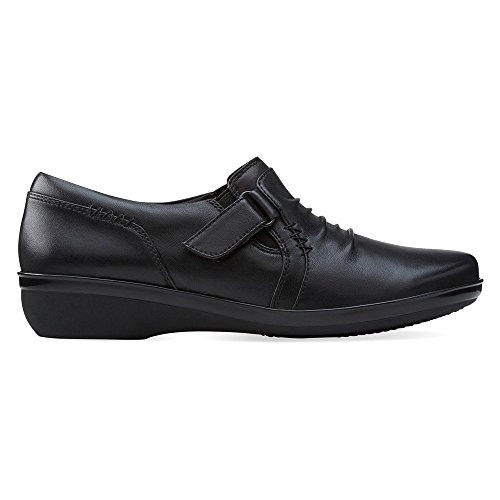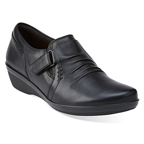A wear-everywhere shoe in basic leather colors with ruching accents, stretch gore, and hook-and-loop strap for an adjustable fit. Soft fabric linings, ortholite® footbed, and tr outsoles cushion each step in comfort. This versatile women's shoe from the Clarks collection is easy to dress up with office separates or dress down with jeans.Feature