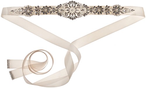 Nina Women's Aneesa Romantic Floral Embellished Satin Bridal Belt, Ivory, One Size