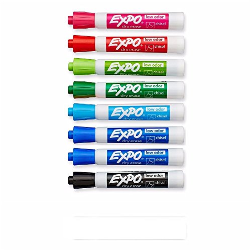 Bright, vivid, non-toxic ink is easy to see from a distance. Erases cleanly and easily with a dry cloth or Expo eraser. Quick-drying, smear-proof ink erases easily for no ghosting. Versatile chisel tip allows for broad or fine writing. Made in the USA