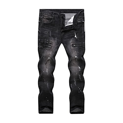 -. Title : Men's Ripped Distressed Black Destroyed Slim Straight Fit Biker Jeans With Zipper
