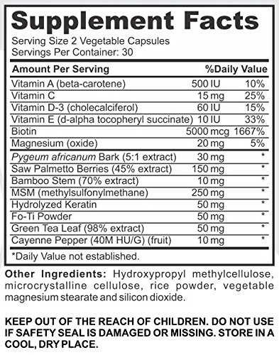 - UNIQUE INGREDIENTS PROVIDE EXTRAORDINARY BENEFITS: Packed with natural ingredients, everything from Biotin, MSM, Saw Palmetto to Fo Ti and more. Our vegetable capsule formula is gluten free, cruelty free and does not contain any chemicals.