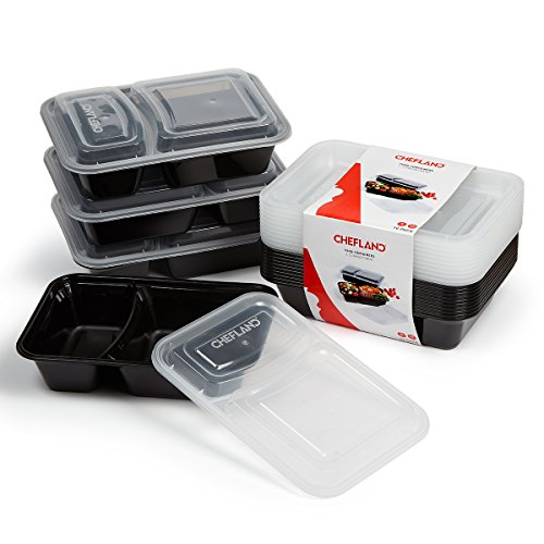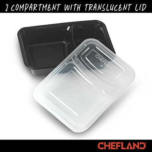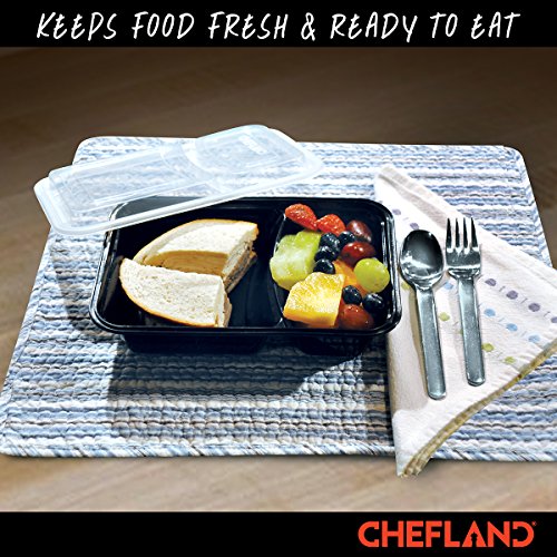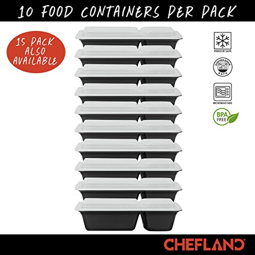 ChefLand New and Upgraded 2-Compartment Food Container with lid/Bento Box/Lunch Tray with Cover (10 Pack), Black
