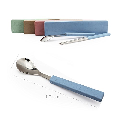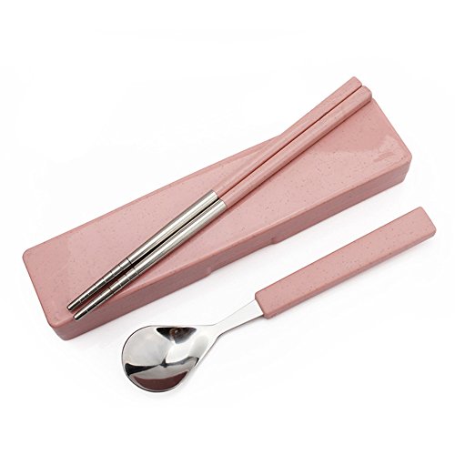 Tentock 포터블 식기 환경 보호 밀짚 스테인레스강 젓가락 + 스푼 어른 아이 겸용 하이킹 등산 캠프 도시락 통학 통근용 4 색선택가(레드)