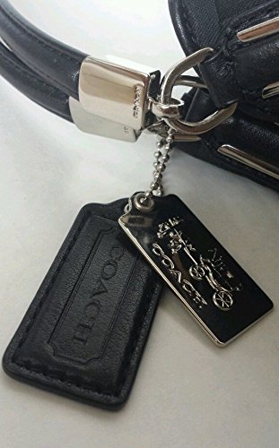 COACH 26448 MADISON OP ART Sateen/Leather Shoulder Bag MSRP $358.00 + TAX BRAND: COACH COLOR: BLACK DIMENSIONS APROX.: 14" L x 13.5" H x 4" D Dual handles : 9" drop STYLE: 26448 EXTERIOR TOP SNAP AND ZIP CLOSURE BLACK SIGNATURE SATEEN AND BLACK LEATHER TRIM COACH LETTERS LOGO IN ONE SIDE SILVER TONE AND LEATHER HANDLES SILVER TONE HARDWARE 2 COACH HANG TAG ONE SIDE INTERIOR PLUM PURPLE SATEEN INTERIOR LINING INSIDE OPENS UP TO 3 LARGE COMPARTMENT 1 ZIPPER POCKET 2 SLIP POCKETS COACH PATCH WITH SERIAL NUMBER COACH CARD CARE IS INCLUDEDFeature
