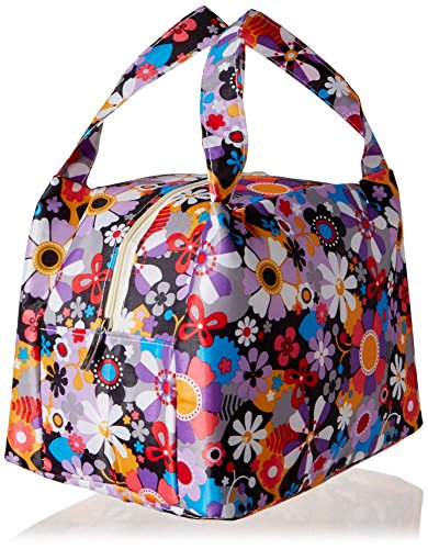 PuTwo Resuable Lunch Bag, Insulated Tote Bag, Picnic Food Holder - Purple Floral