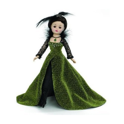 Brand New Madame Alexander Disney Oz the Great and Powerfull Evanora Doll 10-inch fully-articulated Evanora, with brown eyes and side-parted, brunette hair pulled back and styled into a loose bun, looks more beautiful than you'd ever expect the future Wicked Witch of the East to look. She's dressed in a full-length gown of sheer, metallic green boucle with an overlapping skirt that's lined in black glissenette. The square neckline of the bodice, to the gown, is made brilliant by the addition of rhinestones. The sleeves of long, black lace are lined in beige glissenette and the shoulders are trimmed with black marabou. Black tights and knee-high, black flock lace-up boots add detail to the striking costume. A large green pendant on a gold chain and a dark gold, passementerie hair comb, with two black, attached, coque feathers, add even more style and flair to, Evanora's finished look. Limited Edition of 750 Size: 10 in. SKU: 66935 New in its original boxFeature