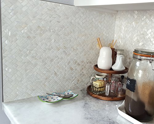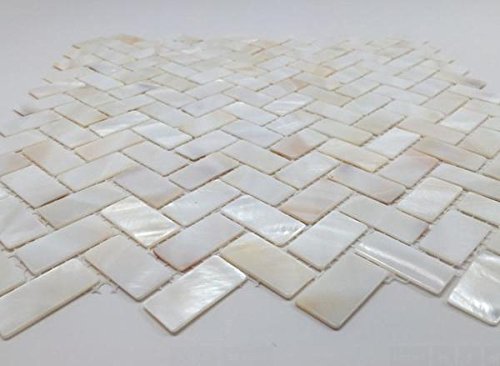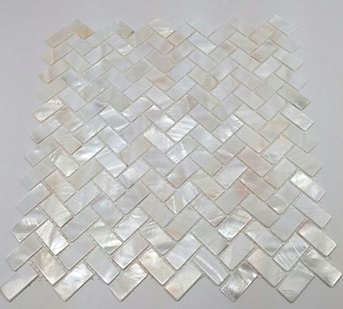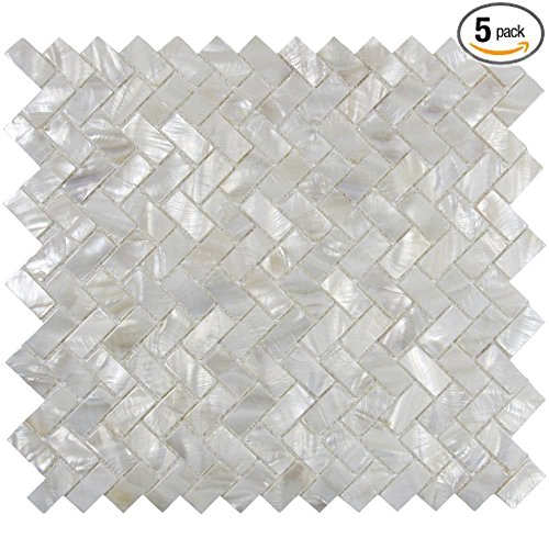 Genuine Mother of Pearl Oyster Herringbone Shell Mosaic Tile for Kitchen Backsplashes, Bathroom Walls, Spas, Pools by Vogue Tile (Pack of 5 Sheets)