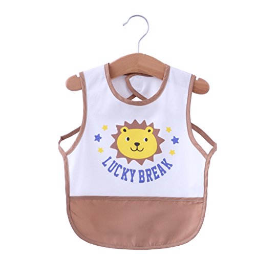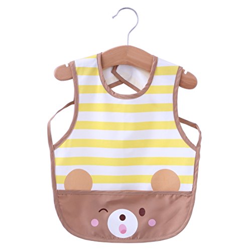 -. Binding : Apparel -. Brand : Momloves -. Department : unisex-baby -. Feature : Polyester, and waterproof on the surface , very high quality waterproof fabric,Very good quality , light weight / Measures 11.5" across chest, 13.5" from neck down, Sized to fit 1-3 Years / The material is soft and easily cleaned.The fabric is easy to wipe off and machine-washable / It protects the child's clothing / Prevent food from entering, and the velcro clasp is quite strong and durable,Bright vibrant colors and nice soft material that is comfortable to wear and easy to clean.It could have saved so much time cleaning stains on baby's clothes. -. ProductGroup : Apparel -. ProductTypeName : ACCESSORY -. Size : Small -. Title : Momloves Cute Cartoon Waterproof Bib (1-3Years)
