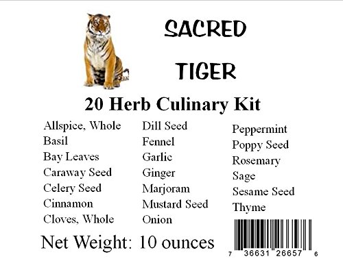-. Feature : 20 Half Ounce herbs resealable ziplocs / Popular Seasonings and Spices / High Quality Fresh Dried Herbs / All Herbs listed in description / Please purchase only from Sacred Tiger to guarantee quality!