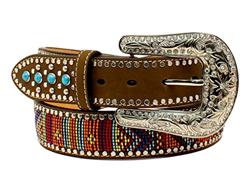 Studio : Blazin Roxx Publisher : Blazin Roxx Binding : Apparel Product Description You'll love this Blazin Roxx fashion belt, which features a multi-colored eye catching pattern with beautiful stones on the tabs. This belt looks great for a night on the town or just hanging out at the barn. Width: 1 1/2'. Material: Leather, Metal. 0