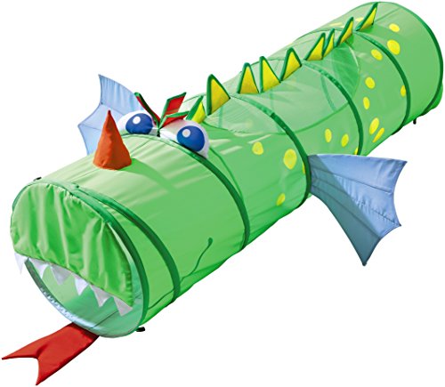 Who is that crawling around in the crocodile's tummy? Your little one will love crawling and creeping through this sturdy indoor tunnel made of non-toxic polyester and mesh fabric. Parents will have comfort in knowing that HABA does not treat any fabric with fire retardant or water repellants. Tunnel is BPA; PVC and phthalate free. Internal structure is made of metal and is easy to set up and take down.Feature