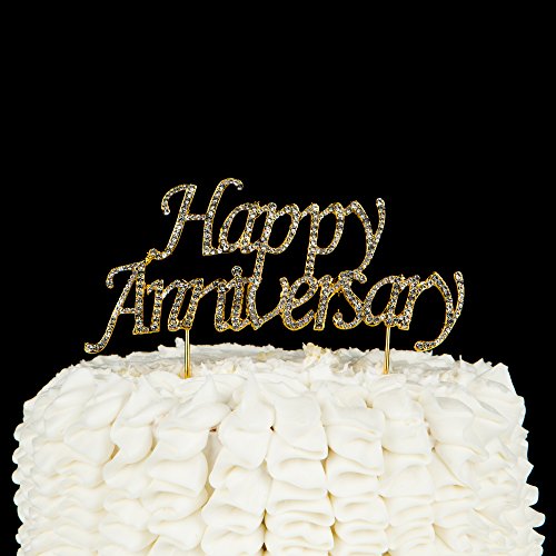 METAL DESIGN MEANS HIGHER QUALITY: Unlike many cake toppers, this premium piece is made of sturdy golden metal alloy and set with genuine crystal rhinestones.