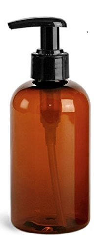 BROWN AMBER PLASTIC LOTION PUMP BOTTLES - 8 OZ REFILLABLE Black LOTION Pumps - ORGANIZE Soap, Shampoo, Lotion with a Clean, Clear Look -...