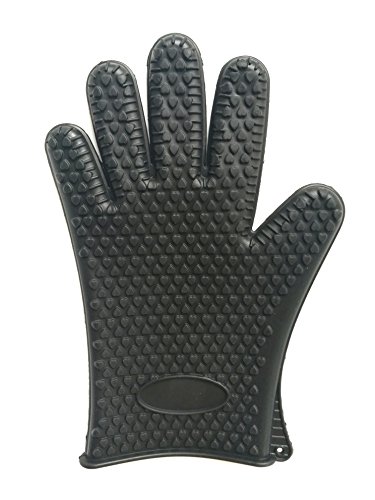 WELLSKEY Silicone BBQ & Oven Gloves - 2 Top Quality Heat & Water Resistant Cooking Gloves - Protective Outdoor Grilling Mitts (Black)