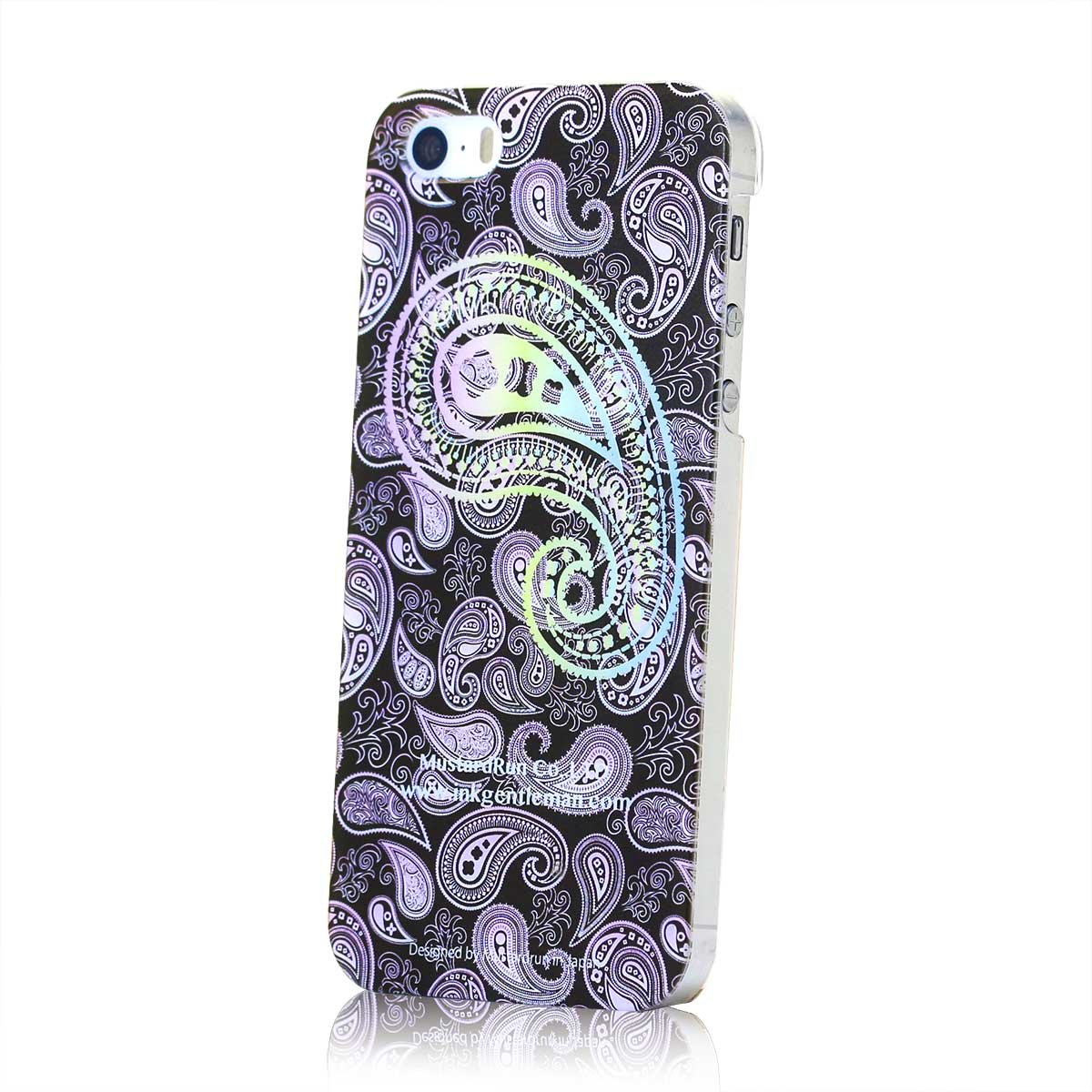 Three-dimensional feeling has been given by printing black on the clear hard case, then printing the paisley pattern, and then pissing up clear ink of the paisley pattern.
