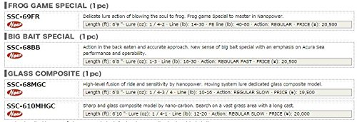 ●정확한 어프로치와 먹게 하의 액션.아큐라 C 성능과 조작성을 중시한신 감각 빅 베이트 스페셜.●최신 테크놀로지「나노 파워」채용,차세대 버스 로드 스피드 스타일 탄생.●나노 파워 테크놀로지에 의한 강도 업,및 경량화는,blank 성능을 비약적으로 진화시키고, 차세대 버스 로드 스피드 스타일을 탄생하게 했다.지금까지 잡을 수 없었던 바이트를 느끼는 고감도나,hooking 파워 파워의 업이 낚시질의 성과로 크게 공헌한다.각각의 모델이 그 포텐셜(potential)를 최대한 발휘 할 수 있는 가이드 셋팅이나 그립디자인를 채용하고, 감도와 조작성에 일절의 타협을 허락하지 않아 (엄선)고집 제쳤다.스피드 스타일에 버스는 순식간에 너의 손에.필드에서 스피드 스타일을 흔든 순간,승부는 정해진다.