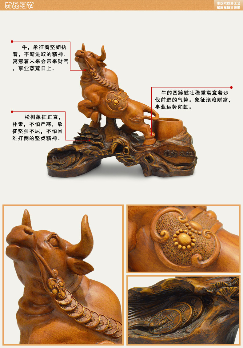 招财牛笔筒摆件 家居客厅装饰品开业乔迁新居书房婚庆礼品