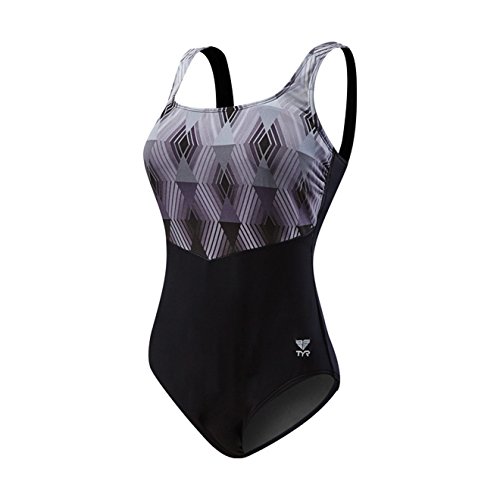 TYR 88TAQTR7A16 STIRLING AQUA CONTROLFIT SWIMSUIT, BLACK/GREY, SIZE 16