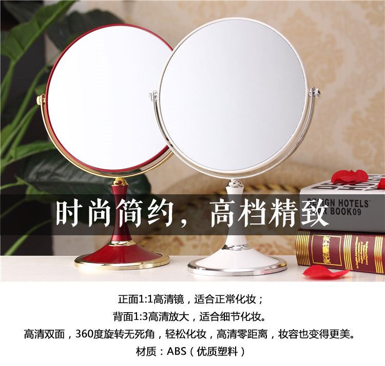 新款台式化妆镜子 双面梳妆镜 大号小号时尚欧式台镜 便携公主镜