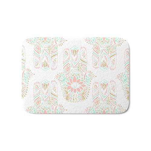 -. Brand : Society6 -. Feature : The perfect bath mats: fuzzy, foamy and finely enhanced with brilliant art. / With a soft, quick-dry microfiber surface, memory foam cushion and skid-proof backing, our shower mats are a cut above your typical rug. / Keep them clean with a gentle machine wash (no bleach!) and make sure to hang dry. / An independent artist profits from every purchase with Society6. -. Label : Society6 -. Manufacturer : Society6 -. MPN : s6-3317323p55 -. PartNumber : s6-3317323p55 -. ProductGroup : Home -. ProductTypeName : HOME_BED_AND_BATH -. Publisher : Society6 -. Studio : Society6 -. Title : Society6 Modern Girly Pink Mint Gold Hamsa Hand Of Fatima Bath Mat